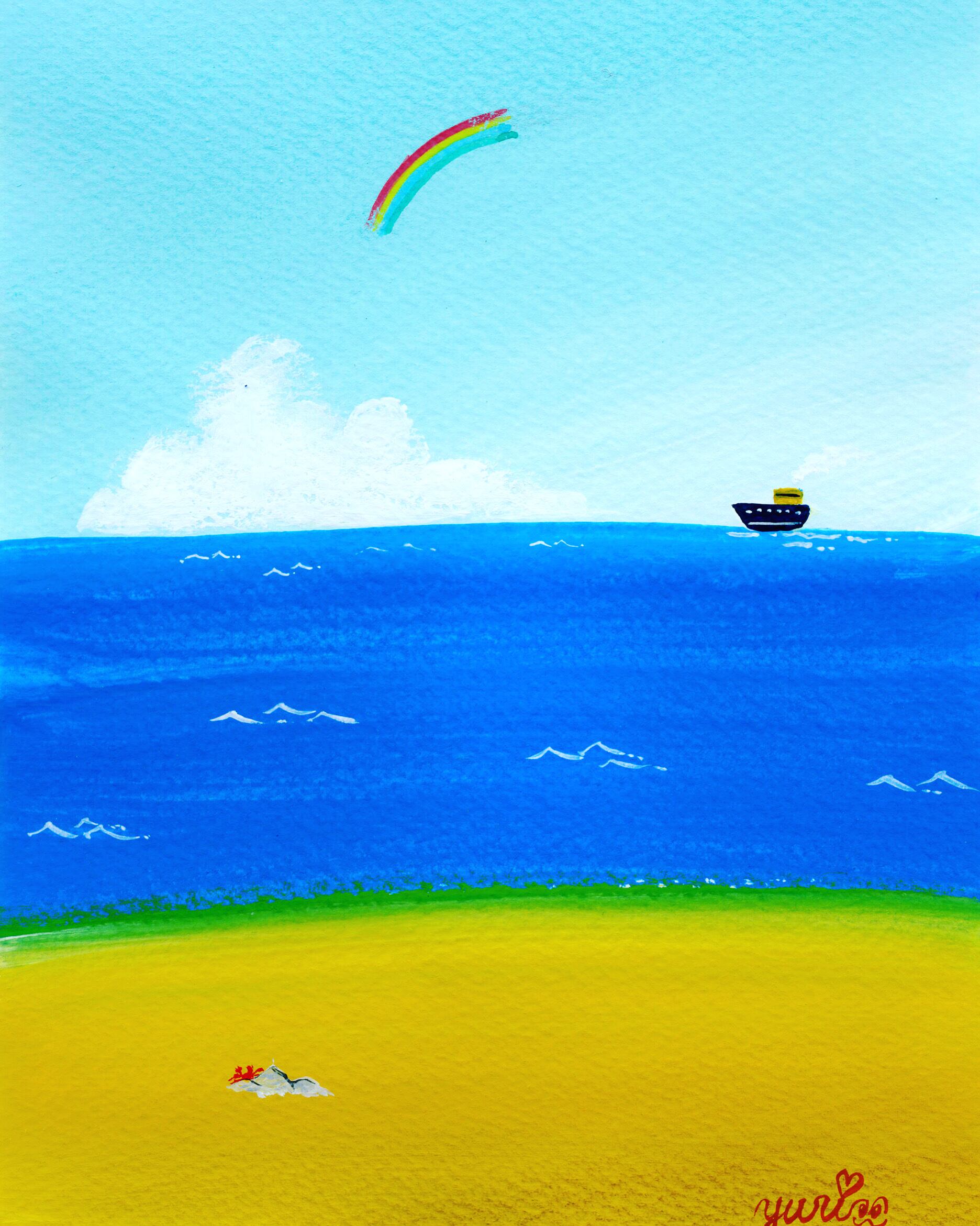 海の向こうに、今にも消えてゆきそうな虹